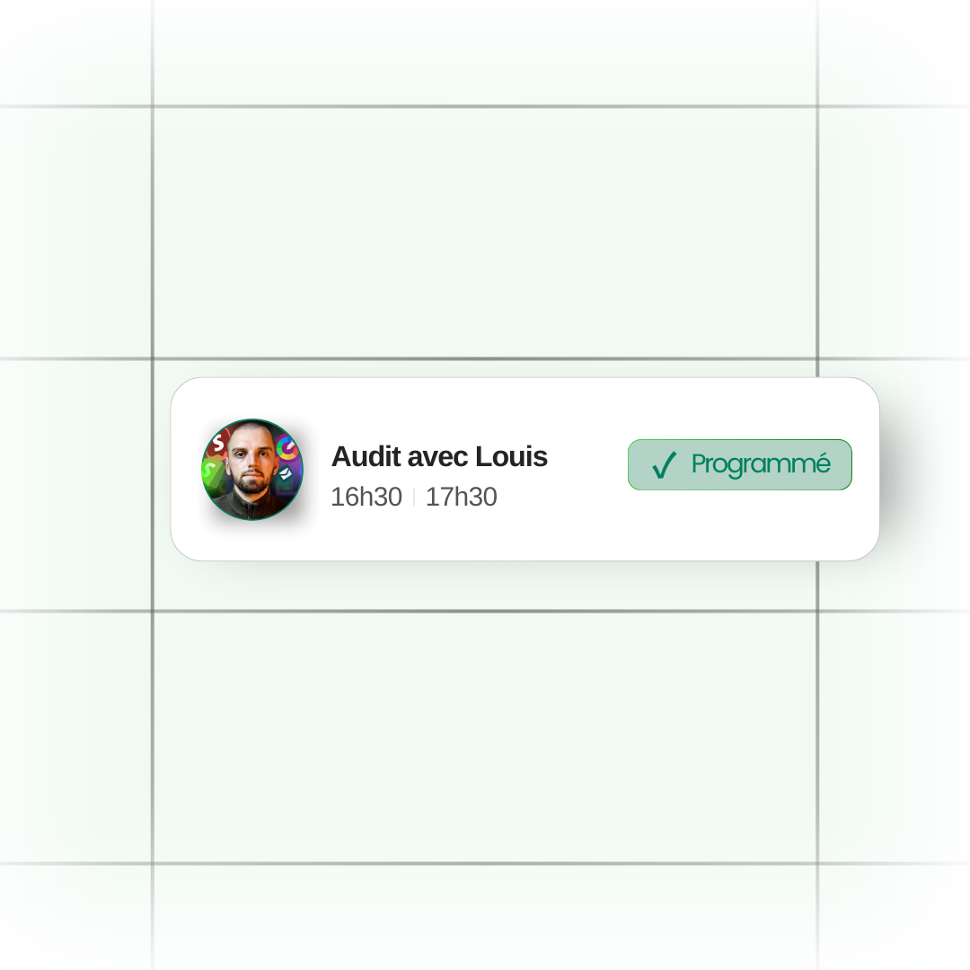 Vous aurez accès à l'accompagnement et à tous les bonus à vie. Vous pourrez réserver un audit avec moi.
